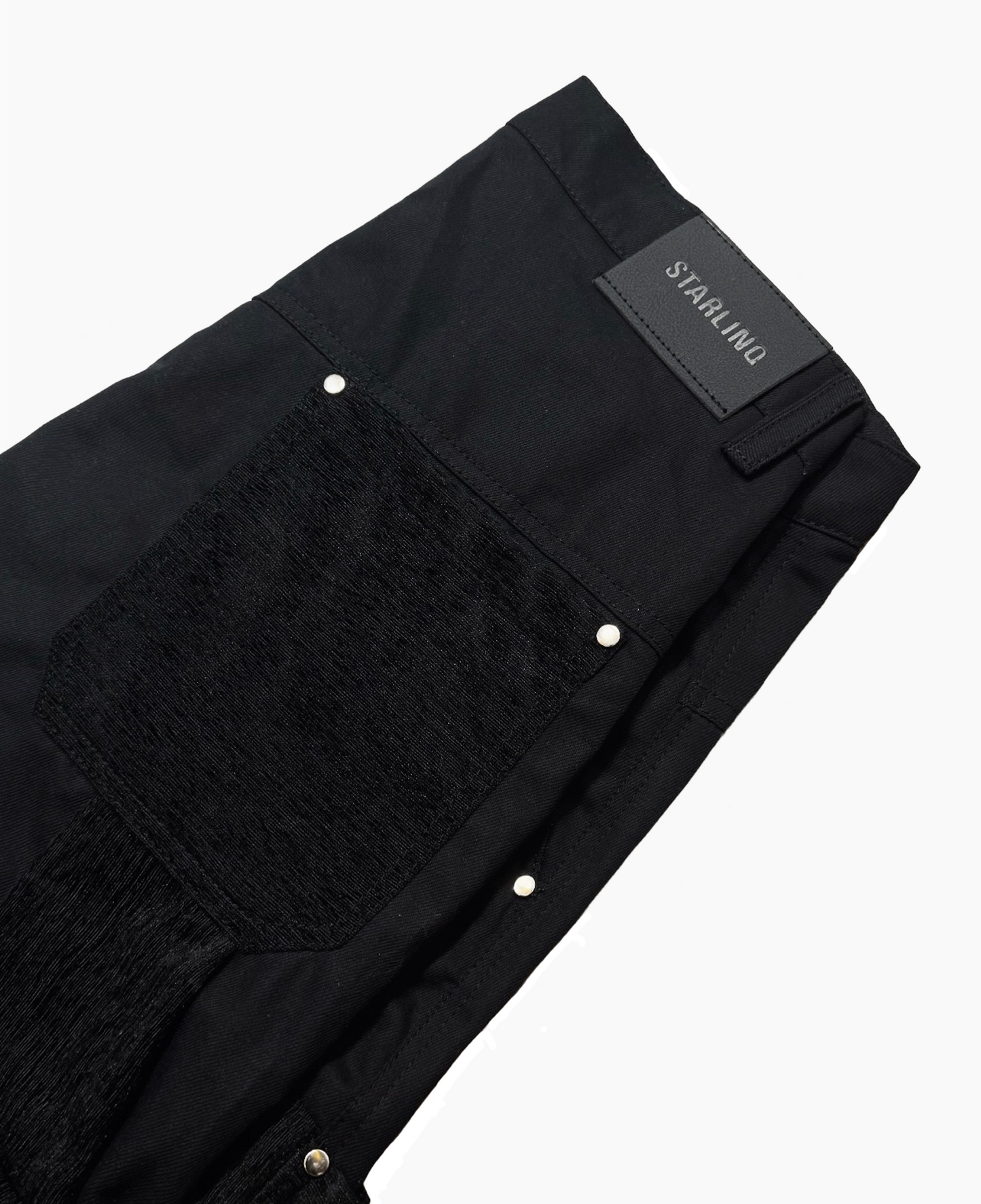 Crafted from premium jacquard fabric, these pants showcase an intricate pattern that exudes sophistication and flair. The double-knee design adds durability while enhancing the overall aesthetic with unique utility patchwork, making them a true statement piece.