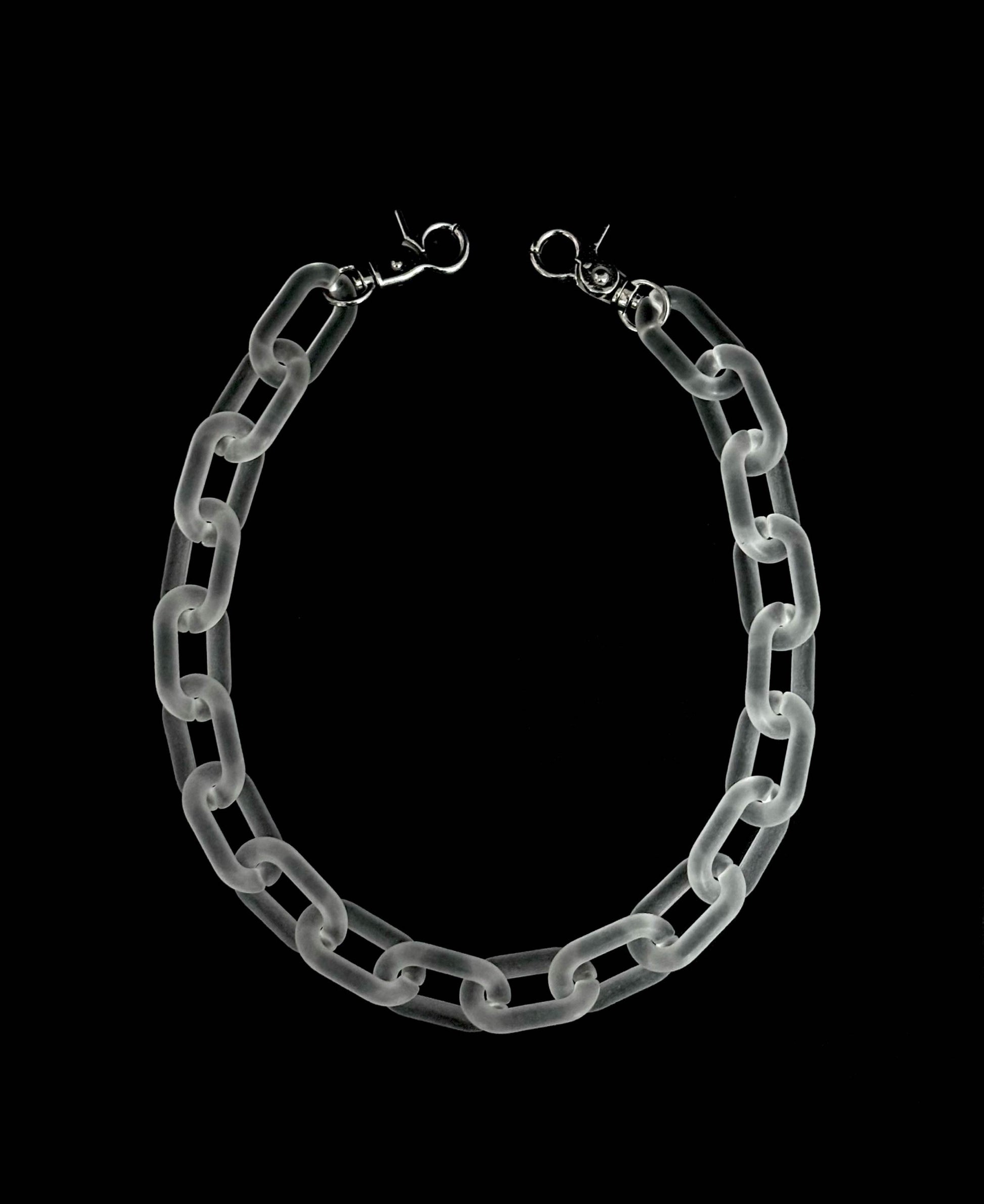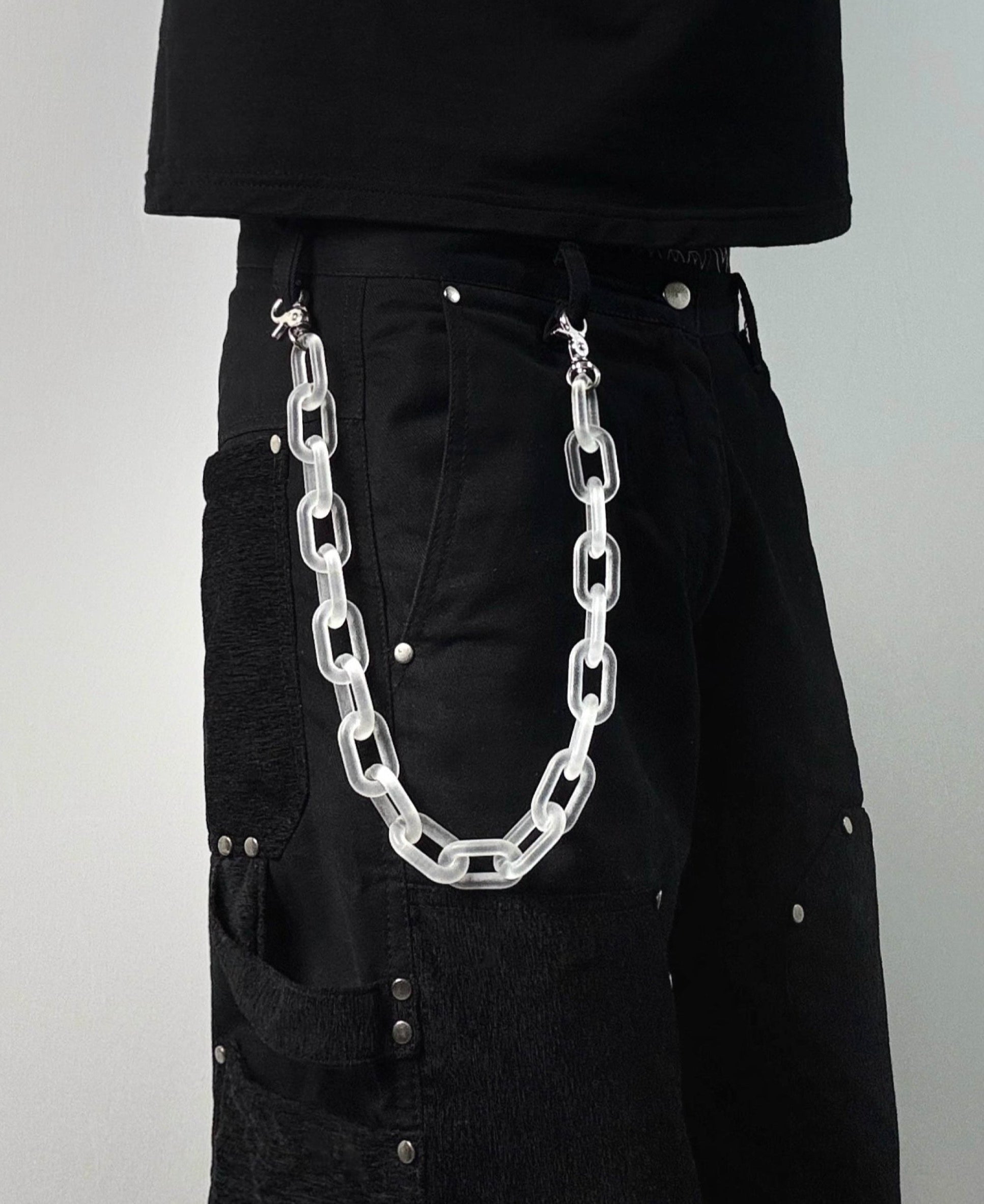 This piece is built for versatility. With its transparent design, it delivers a futuristic edge while keeping things lightweight and clean. Originally created as a wallet chain, it doubles seamlessly as a neckpiece, letting you switch between function and style with ease.